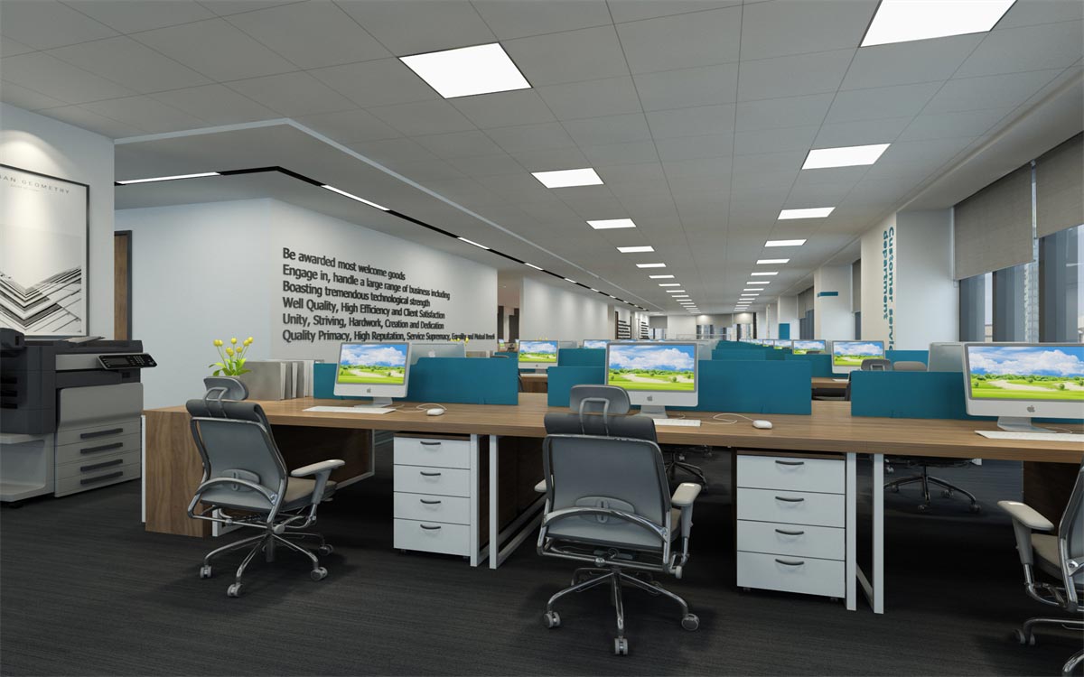 在前臺(tái)的設(shè)計(jì)方案上,采用企業(yè)的貨運(yùn)集裝的VI配色,配上深色的家具和海洋色的地毯,烘托出活躍靈動(dòng)的辦公氛圍,左側(cè)開方式的走道,增加了空間的延伸性,猶豫海洋的深邃。