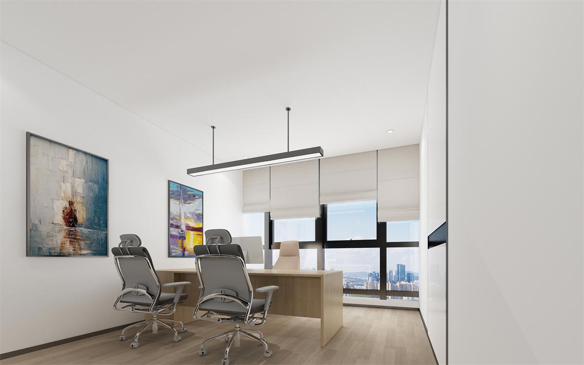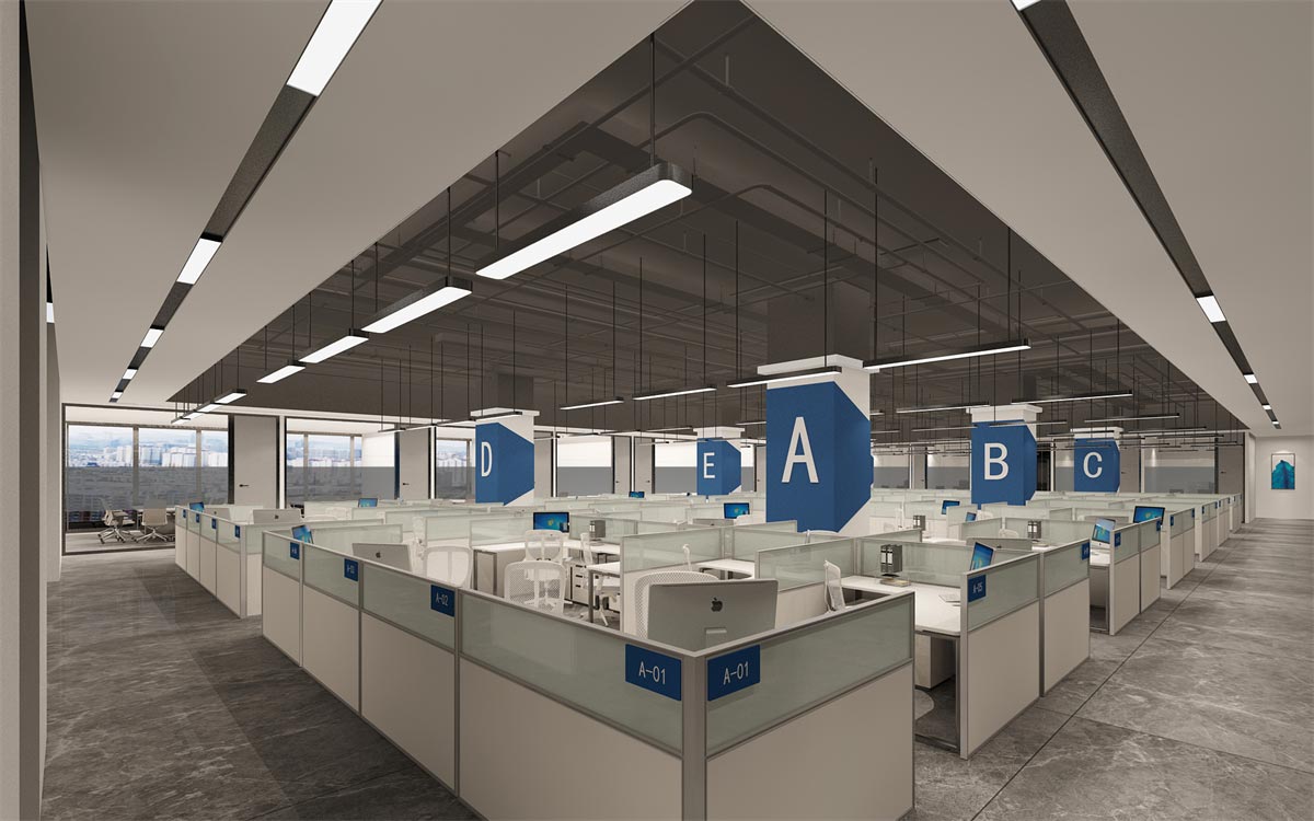 開放辦公區(qū)精選半透明隔檔辦桌桌椅套件,保證員工作不受干擾的同時(shí),又不至于阻斷員工間有效的溝通與協(xié)作。整體采取整齊合理的區(qū)域劃分,確保各部門工作的獨(dú)立性和部門間工作的協(xié)同性。
