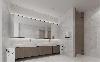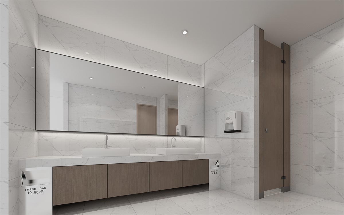 前臺(tái)地板和臺(tái)面采用透亮的大理石瓷磚,搭配大面積的燈帶吊頂,增加整個(gè)空間的通透感,給人清新、光明、安全的舒心感。