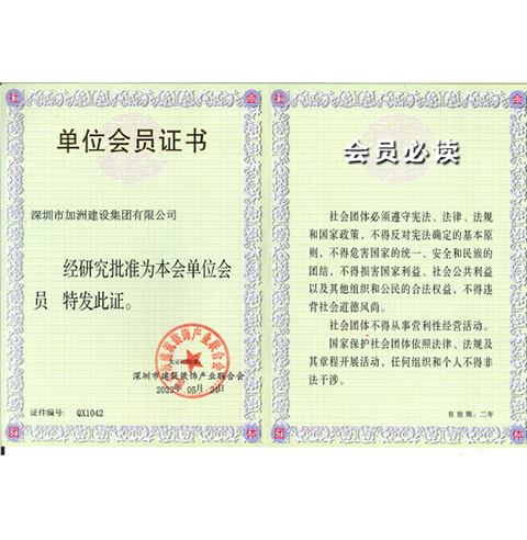 深圳市建筑裝飾產(chǎn)業(yè)聯(lián)合會會員證書